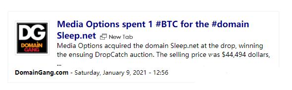 此外,精品域名sleep.net以1個比特幣價格交易!