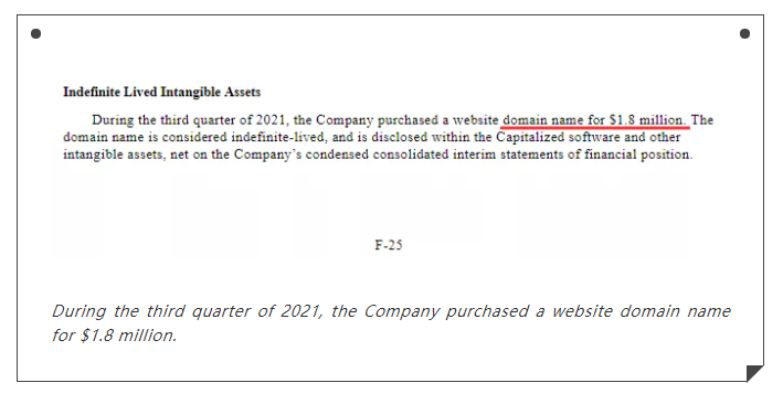 根據(jù)Galaxy Digital向SEC提交的文件,顯示他們是在2021年10月份收購(gòu)的Galaxy.com,后經(jīng)過(guò)買(mǎi)方經(jīng)紀(jì)人確認(rèn),此次交易的信息和價(jià)格均保證真實(shí)。Galaxy Digital 此前啟用的域名為galaxydigital.io,域名Galaxy.com與當(dāng)前域名相比,更為簡(jiǎn)短易記,對(duì)于平臺(tái)的引流和品牌宣傳大有裨益,此次收購(gòu)也進(jìn)一步提現(xiàn)了域名作為數(shù)字資產(chǎn)組合核心組成部分的重要性。